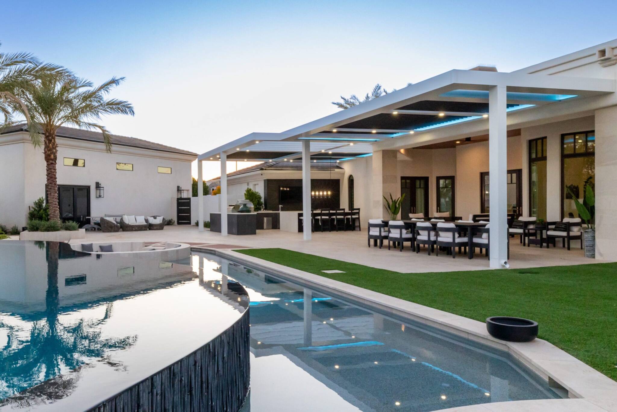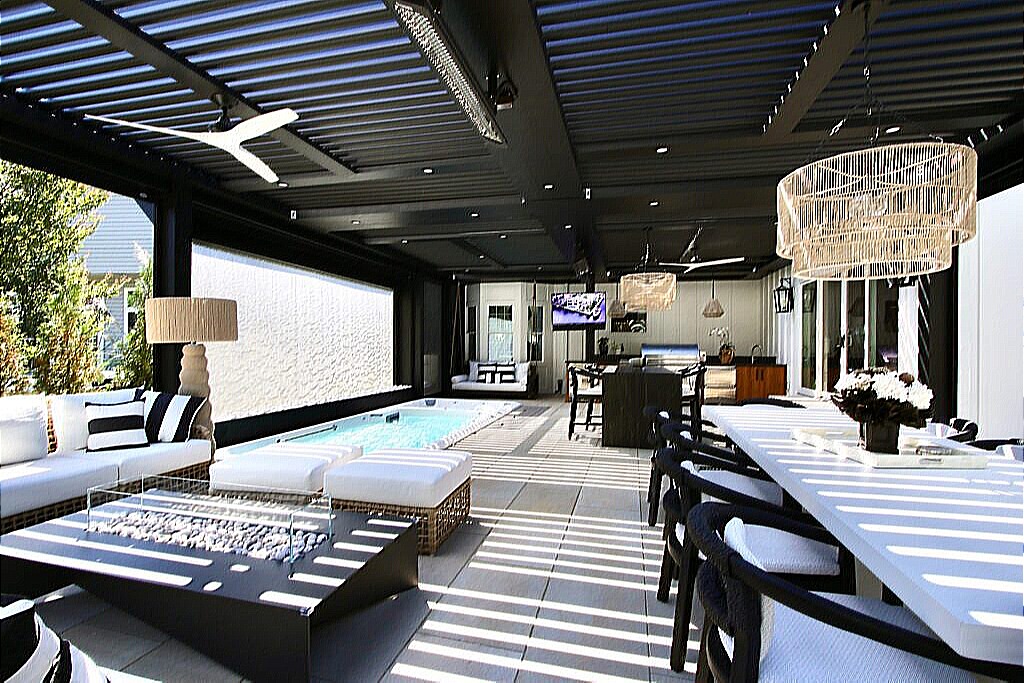 StruXure louvered pergola systems allow you to control the amount of sun coming into your space, and close fully in the rain. These systems are built on innovation, integrating state-of-the-art technology with choice materials that are made to last. The uniquely designed louvers pivot a full 170°, offering protection regardless of the sun’s position. Our louvered pergola systems offer superior performance. From the patented interlocking louvers to our system technology, we stand out from the crowd. Plus, the Smart app provides the ultimate control of your outdoor living environment from the palm of your hand. The design and versatility is what makes this the uncontested louvered roof of choice for homes as well as restaurants, country clubs and commercial projects. It is perfect for outdoor space when you can’t afford to take chances when it comes to comfort.